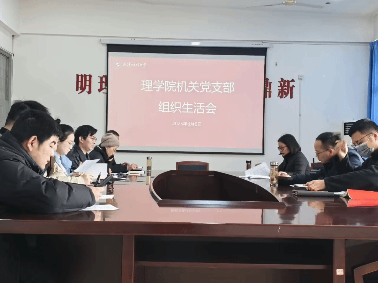 (王祖政 李嘉成)3月6日,sunbet申慱官网机关党支部在教二楼22614会议室召开支部组织生活会和民主评议党员,以“强化党性锤炼、筑牢思想防线”为主线,通过专题党课、警示教育、批评与自我批评等环节,推动全体党员在政治体检中实现自我净化、自我提升。党支部书记宋华丽主持会议。