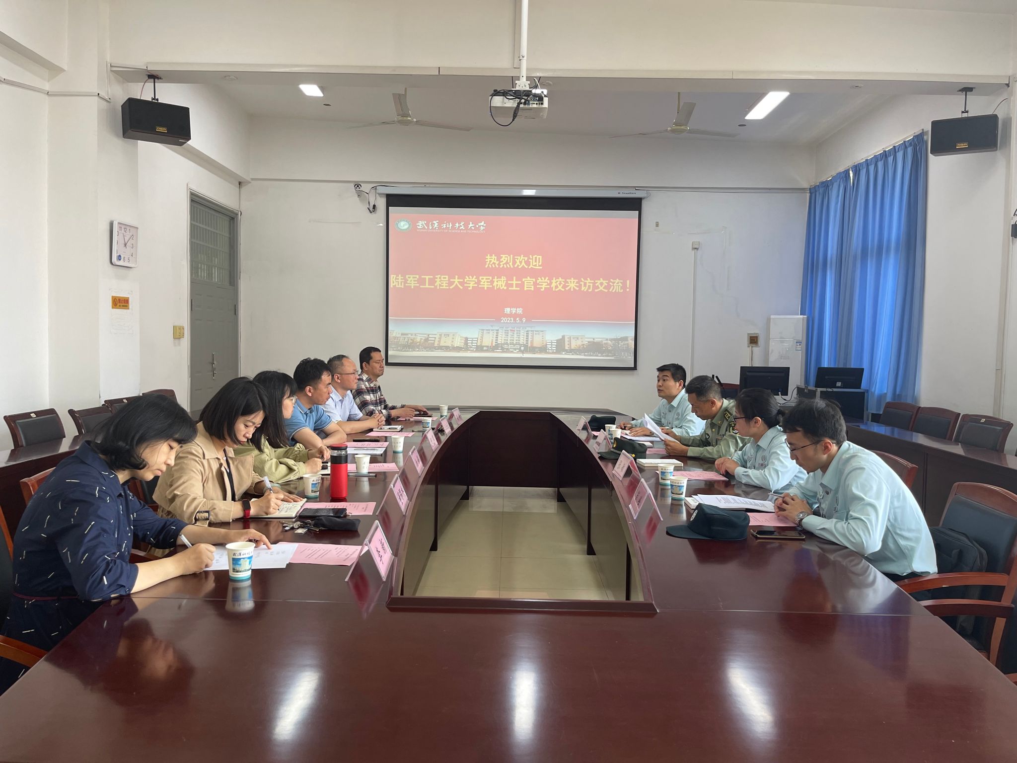 5月9日上午,陆军工程大学军械士官学校基础部协理员王志国、教研室主任张敏、教员徐兵等一行来到sunbet申慱官网就物理实践创新方面进行交流访问。申慱官网副院长何理、应用物理系领导班子成员及部分教师参加交流会。本次会议在教二楼六楼会议室召开,由sunbet申慱官网党委副书记余婷主持。