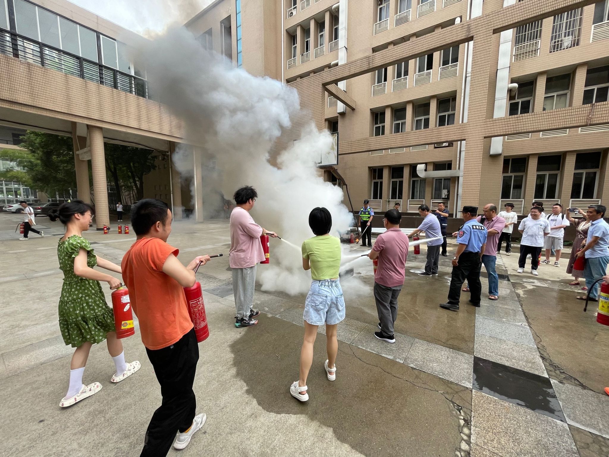 (通讯员施洁)为响应我校“校园安全检查月”和“安全生产月”的号召,提高申慱官网师生的消防安全意识,增强火灾应对能力,6月15日,我校保卫处消防科科长段晓栋在申慱官网楼下空旷地带为申慱官网师生进行了消防科普及灭火器实操培训,申慱官网党委书记刘泽喜、院长丁义明及其他师生代表一起参加了此次消防演练。