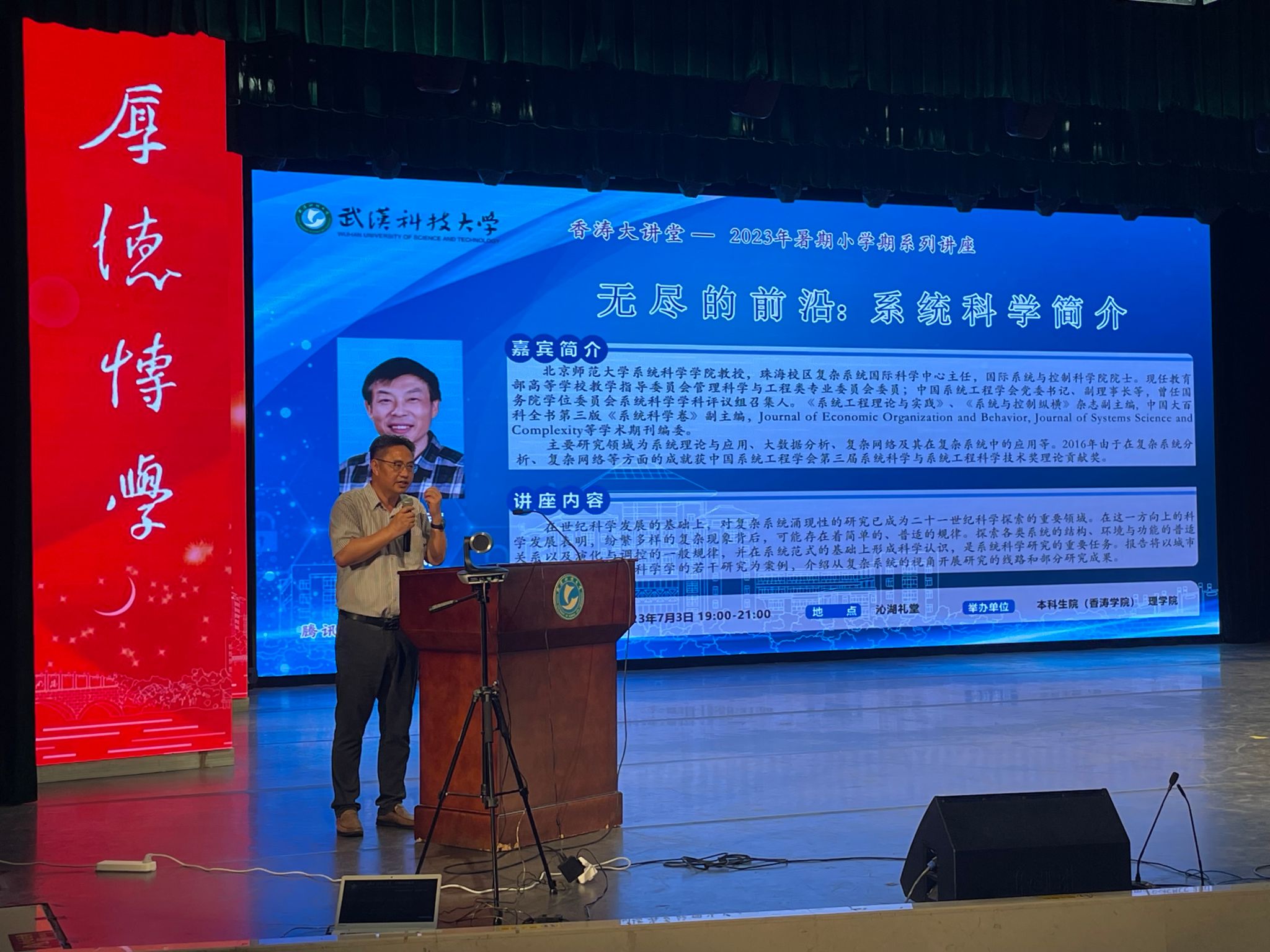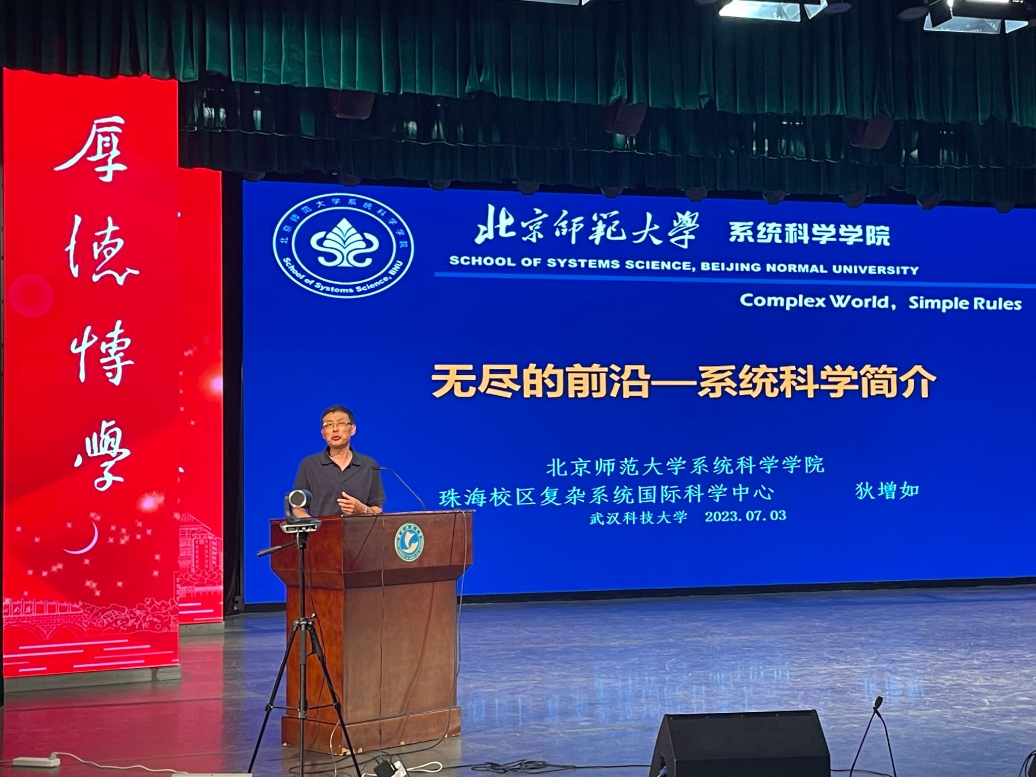 (通讯员苏青青 申杨)7月3日晚19:00,北京师范大学狄增如教授受sunbet申慱官网邀请在沁湖礼堂为我校师生作学术报告,题目为“无尽的前沿:系统科学简介”。sunbet申慱官网领导及师生代表、香涛学院全体师生出席讲座。讲座由本科生院副院长、香涛学院院长(兼)张志清教授主持。