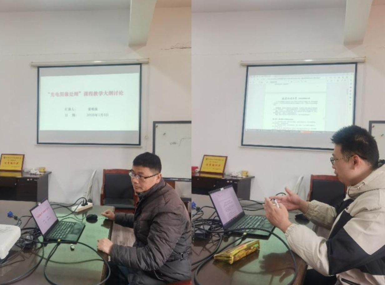 随后,承担各个光电专业课程的老师分别汇报了课程大纲,老师们从课程目标、教学内容、教学方法等方面进行了详细阐述,这些汇报展示了老师们在教学上的创新和努力,为其他老师提供了宝贵的经验和启示。