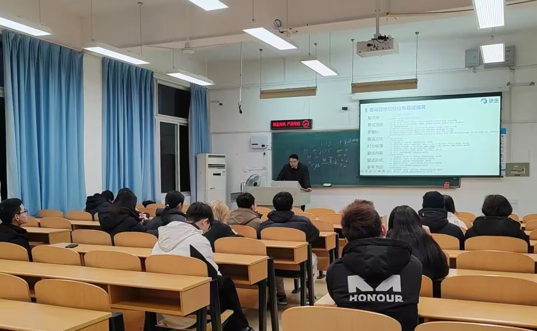 2025年3月5日晚上,sunbet申慱官网联合知名考研机构“研途教育”举办“2025考研复试通关计划”专题指导讲座。多名考研学子齐聚11108,研途望老师从复试策略、科研素养展示到职业发展规划为同学们进行考研复试讲解。