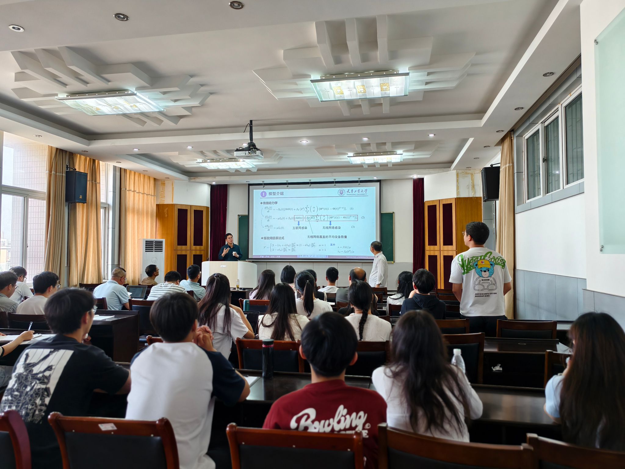 夏承遗教授在报告中详细介绍了复杂网络建模研究的几个典型模型及其最新进展,特别是近年来备受关注的高阶复杂网络研究。他分享了自己和课题组成员在高阶网络演化动力学领域的最新工作,并探讨了非线性动力学相关研究在复杂网络建模和分析中的应用。夏教授的报告内容丰富、深入浅出,为与会师生提供了宝贵的学术见解和研究思路。