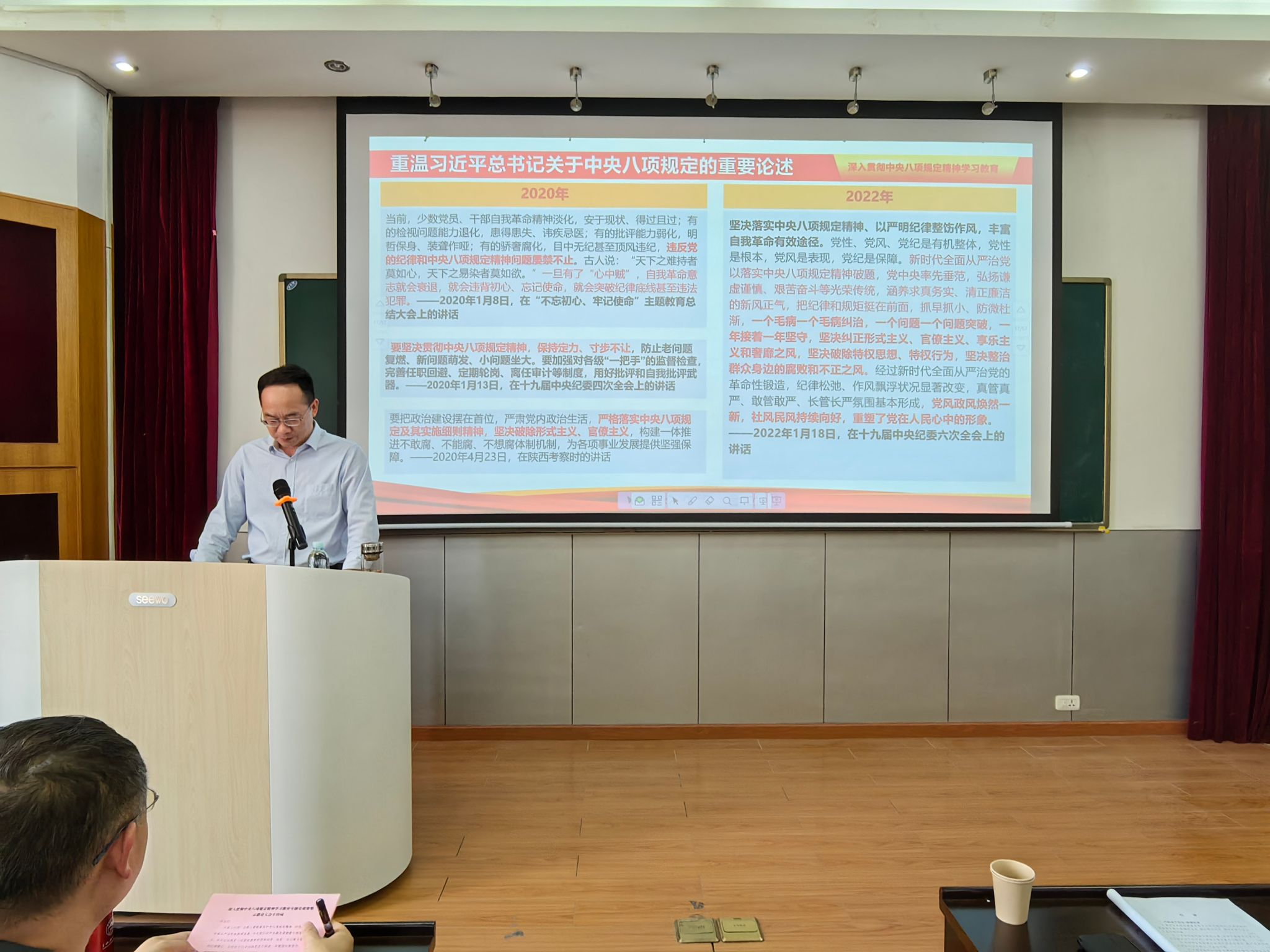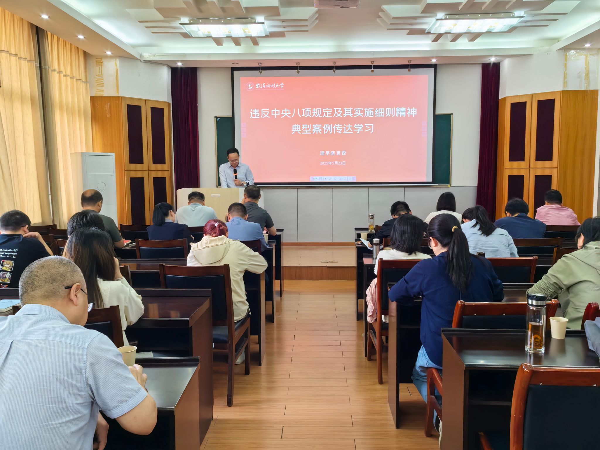 为深入贯彻中央八项规定精神学习教育,纵深推进全面从严治党,sunbet申慱官网于5月23日下午在22515学术报告厅召开深入贯彻中央八项规定精神学习教育专题党课暨警示教育大会,学院领导班子成员、系部主任、副主任、各党支部书记、支委会成员及党员代表参加,学院党委书记王文涛出席会议并讲话,学院院长丁义明主持会议。