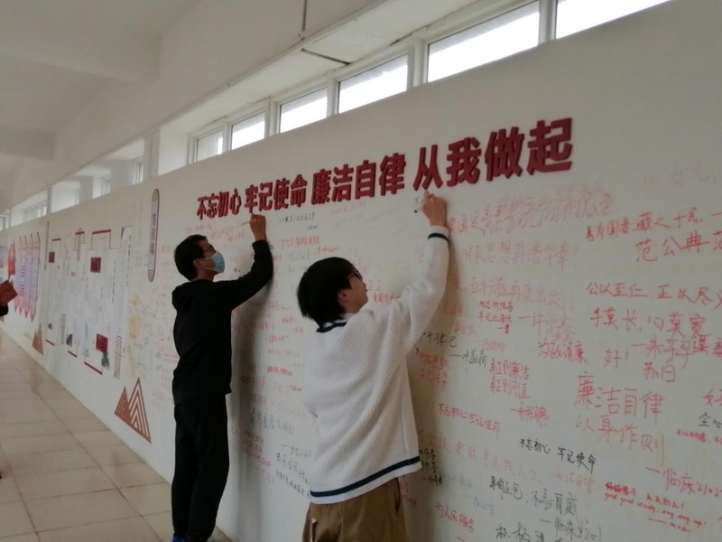 学院研究生第一支部党支部书记孙轲表示:“签名是一种承诺,我们应牢记使命,把清廉作风铭记在心,严格自律,明理、诚信、勤勉、笃学,为营造学院清新学风做好表率。”