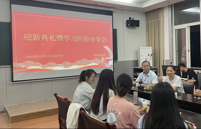 2022年9月22日晚,sunbet申慱官网分数阶微分方程与博弈论研究组在教二楼五楼会议室举行组内研究生迎新典礼暨学习经验分享会。组内全体教师和研究生出席了本次会议,通过线下和线上同步进行。会议由20级数学专业研究生潘前主持。