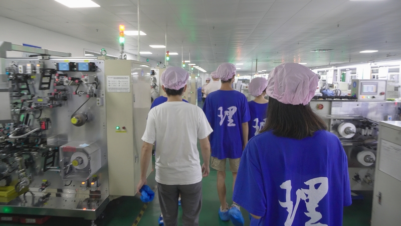 车间主管刘刚带领实践成员们参观了生产线,他介绍,为了防止灰尘、水分、发丝进入电池,造成短路、寿命缩短、甚至无法使用的结果,进入车间必须佩戴头套、口罩、鞋套以及禁止携带饮用水等。