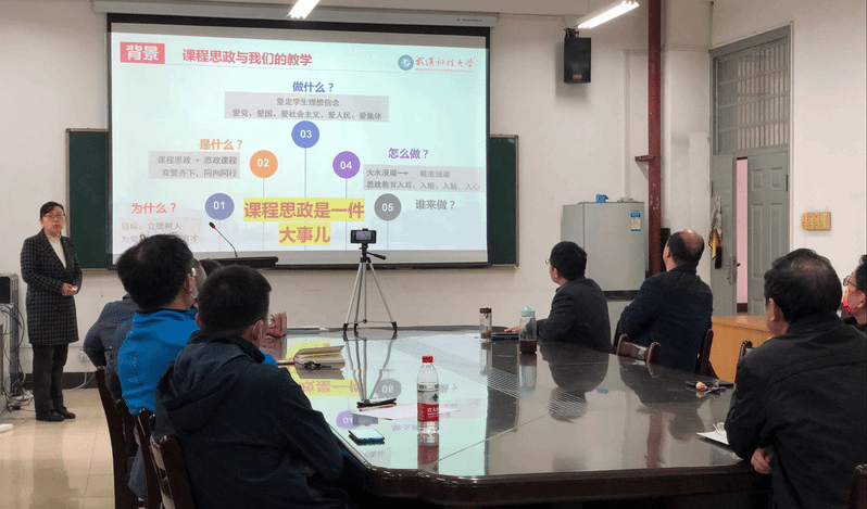 武科大网讯(通讯员蒋君)3月31日,sunbet申慱官网数学与统计系开展课程思政教学交流会,本次会议由数学教工党支部蒋君工作室承办,通过线下和线上直播相结合的方式。会议邀请到学校思政课程获奖老师李新、韩芳作交流报告,系党总支书记余胜春、系主任刘云冰和全系教师参加会议,蒋君主持会议。