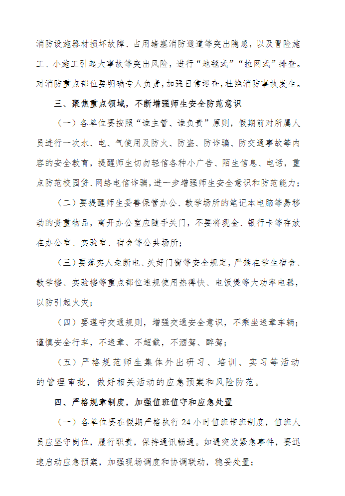 关于做好假期安全工作的通知