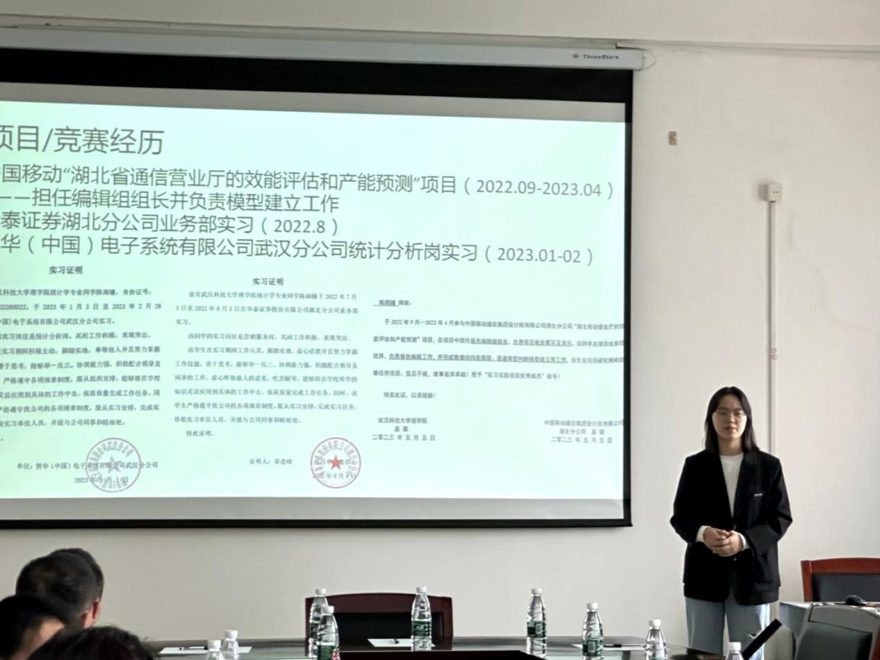 本次答辩会由学院学办主任毕浩洋主持。他介绍了本次答辩会的流程及候选人的相关情况。参与竞评的11位学生在课业学习、科研竞赛、社会实践等方面均取得了一定成绩,有3位学生的课程绩点突破了3.98,综合绩点最高的一名学生综合评分达到了4.39,相比往年实现了突破。