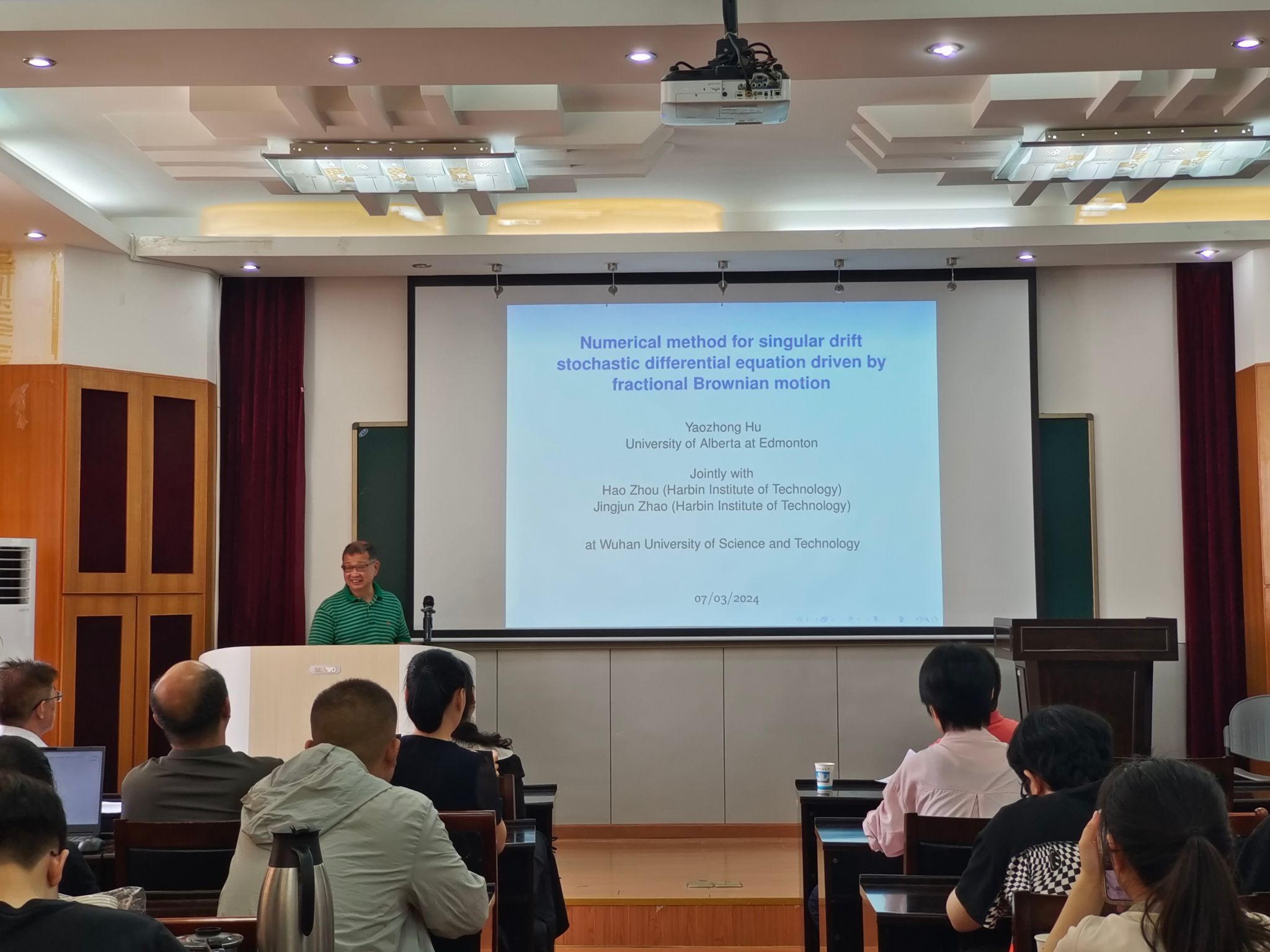 胡耀忠还在教二五楼报告厅作题为“Numerical method for singular drift stochastic differential equation driven by fractional Brownian motion”的学术报告。本次报告会由申慱官网系统科学部教授陈贵词主持,申慱官网教师及学生代表参加。