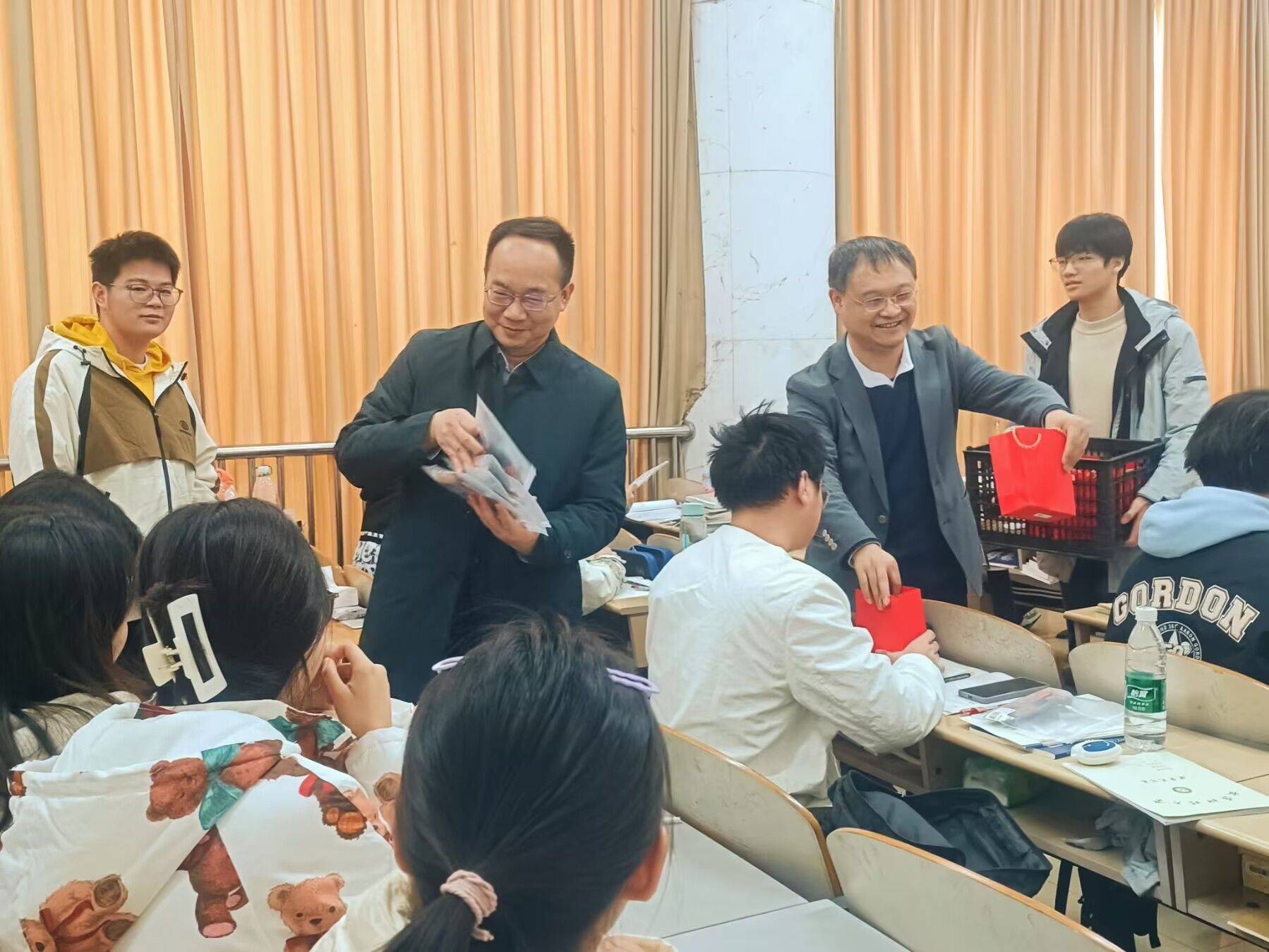 武科大网讯(通讯员林小桐 张迪)为缓解2021级学生考研和考公的压力,并坚定学生信念和信心,11月22日,申慱官网于教22300考研自习室开展了“心想柿橙”冬日温暖企划活动。申慱官网党委书记王文涛、院长丁义明、副院长张传洲以及2021级辅导员毕浩洋出席为学生们送温暖。