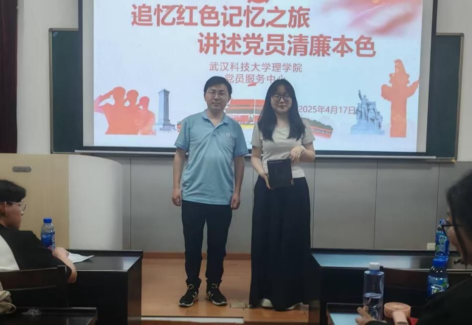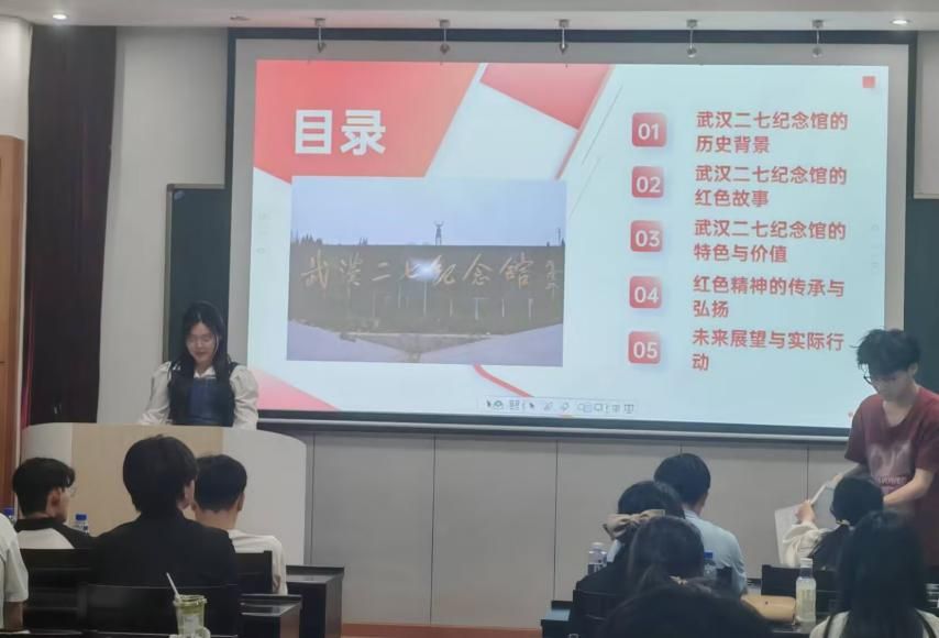 主持人依次介绍嘉宾后宣布比赛开始。在赛事环节里,统计党支部的柯娟化身历史讲述者,她以武汉二七纪念馆为舞台,深情勾勒出二七革命斗争波澜壮阔的艰辛画卷,引领听众穿越时空,真切体悟革命先辈们坚如磐石的信仰与无畏无惧的勇气。研究生第四党支部的崔翎丽,则以“承大别山精神,铸新时代党员担当”为鲜明主题,引领众人踏上了一场精神探索之旅。她不仅深入解读了大别山精神的丰富内涵,更巧妙地将革命精神与时代脉搏紧密相连,发出振聋发聩的号召:每一位党员都应将党的优良传统精神融入学术研究的深耕细作、团队协作的默契配合以及日常生活的点滴之中,努力成为既有思想深度、又有坚定态度、更怀赤诚温度的新时代共产党员。
